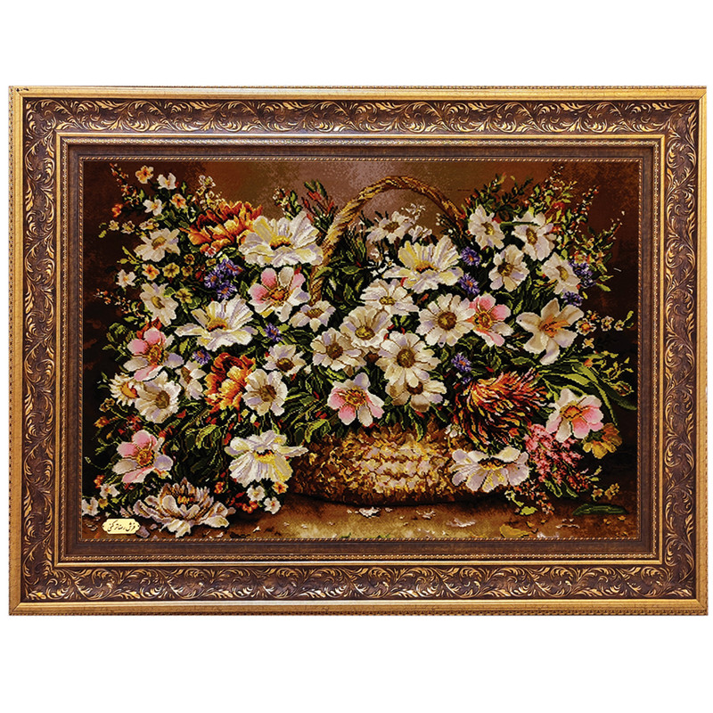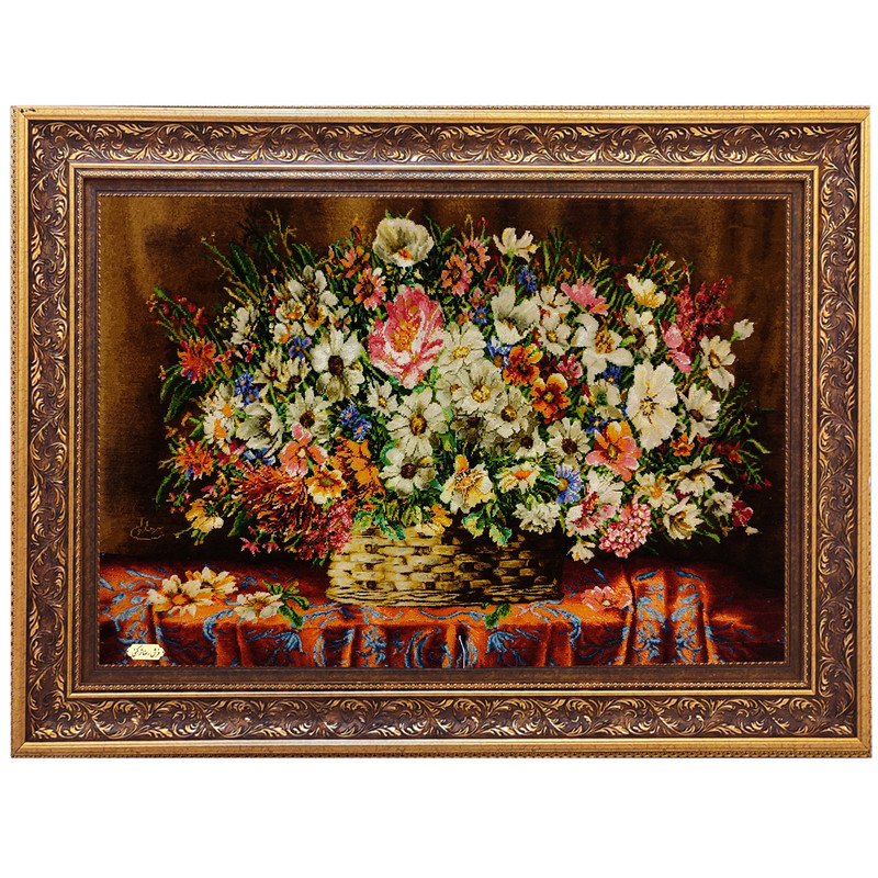 تابلو فرش دستبافت فرش رضا ترکمنی طرح سبد گل مدل 92