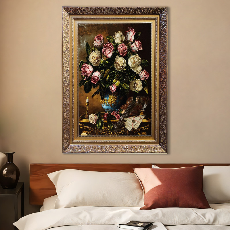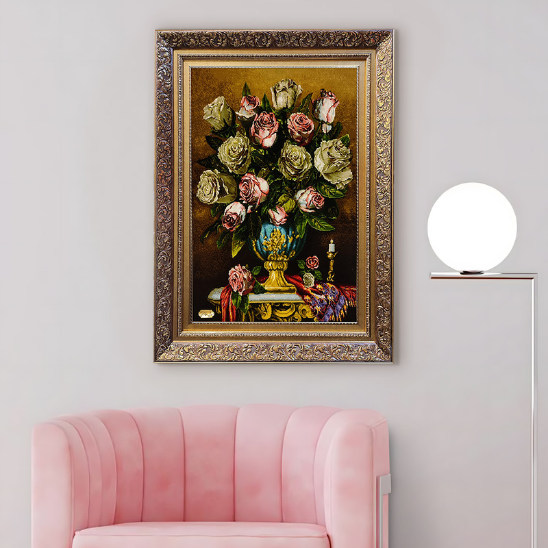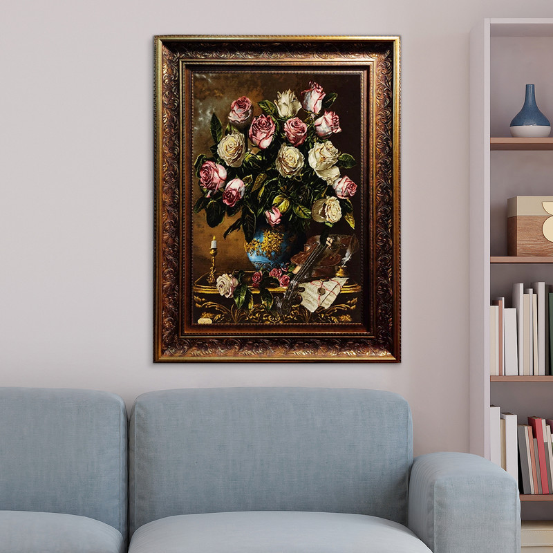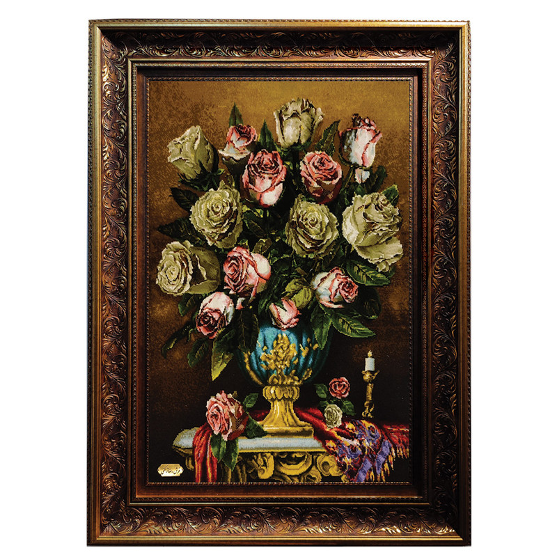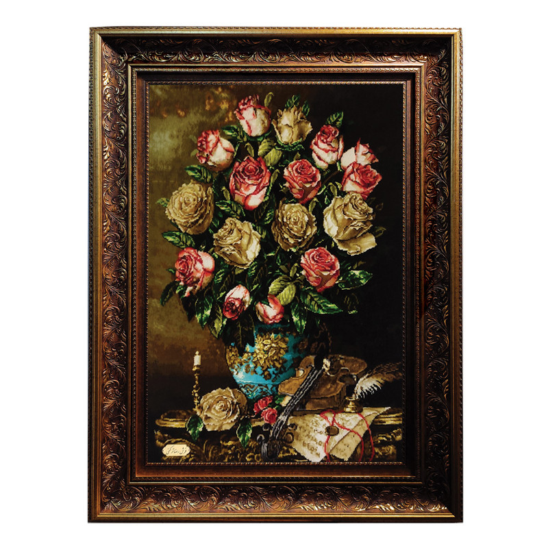 تابلو فرش دستبافت فرش رضا ترکمنی طرح گل رز مدل 007