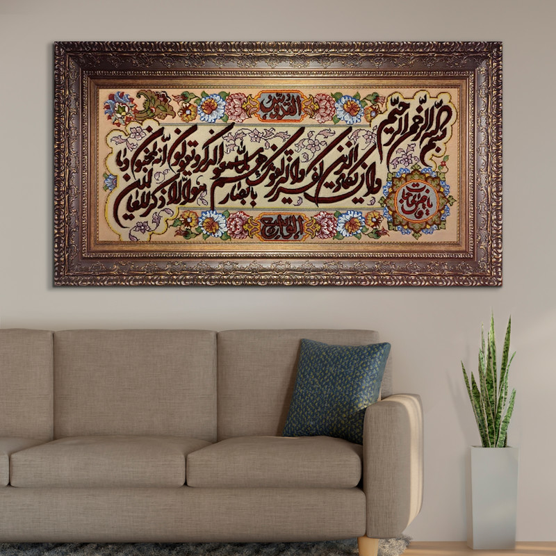 تابلو فرش دستبافت فرش رضا ترکمنی طرح جل جلاله مدل 113