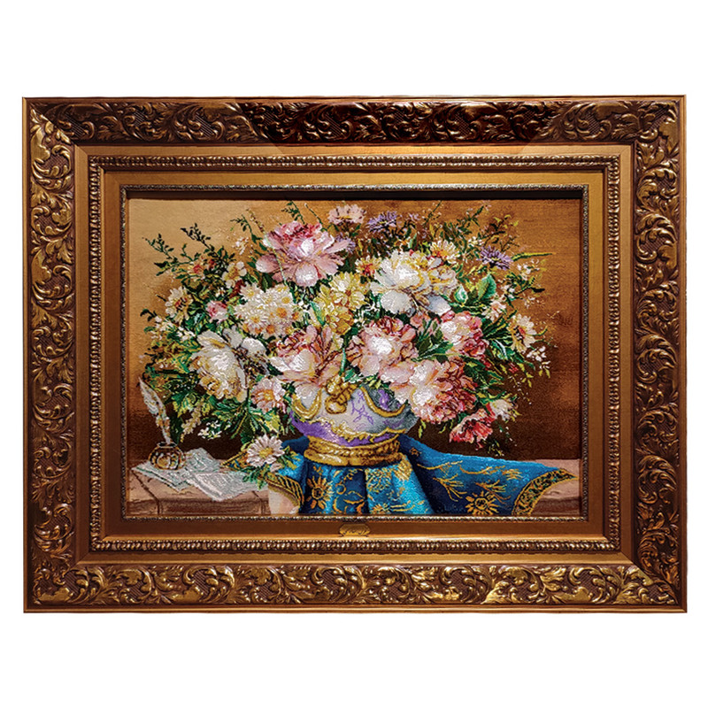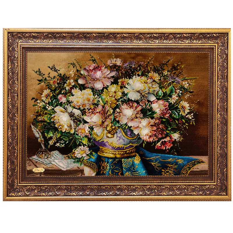تابلو فرش دستبافت فرش رضا ترکمنی طرح گل و گلدان مدل 94