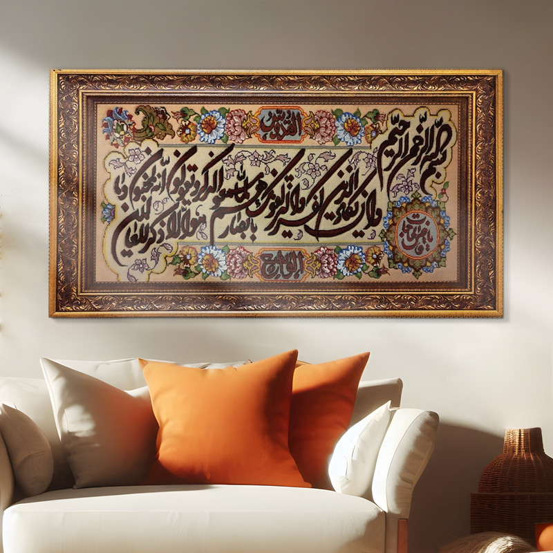 تابلو فرش دستبافت فرش رضا ترکمنی طرح وان یکاد مدل 113