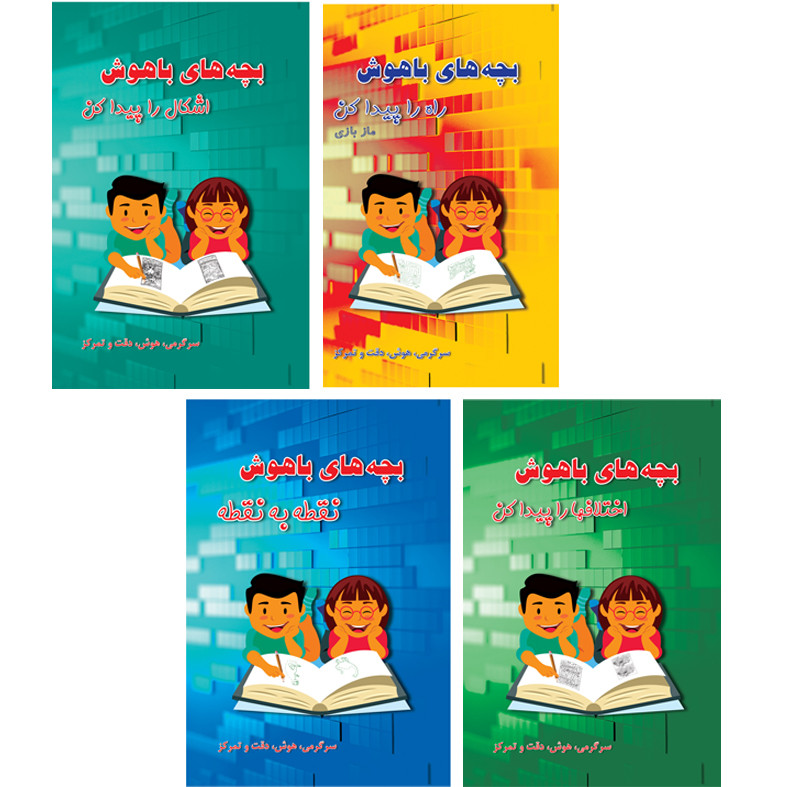 کتاب بچه های باهوش سرگرمی هوش دقت و تمرکز اثر م محمددوست انتشارات کاردستی 4 جلدی