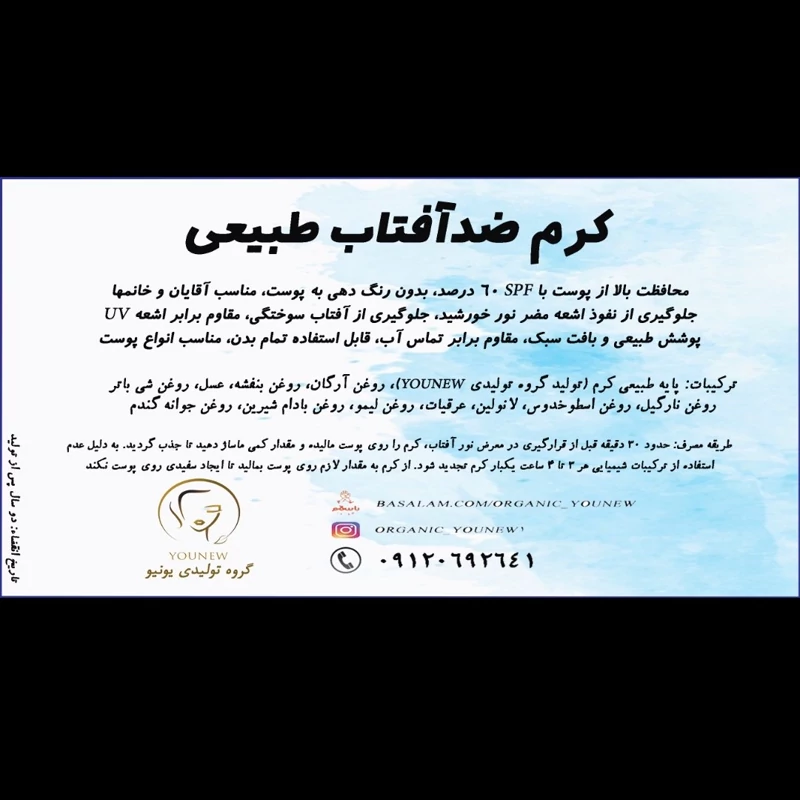 کرم ضدآفتاب با بهره گیری از دانش طب ایرانی اسلامی تولید و در تولید این محصول استانداردهای لازم لحاظ شده