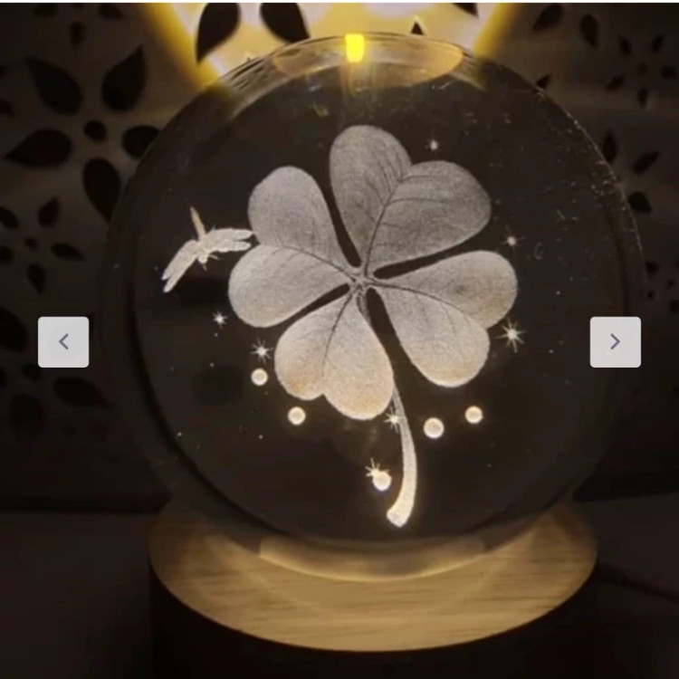 چراغ خواب گوی کریستال سه بعدی طرح گل شبدر سایز 8