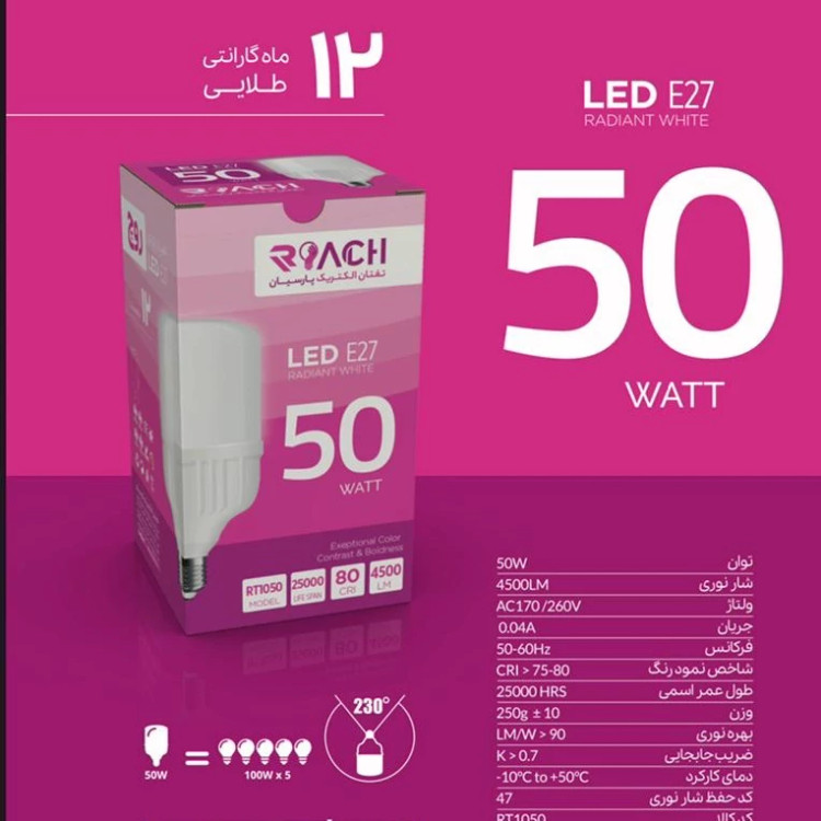 لامپ ال ای دی 50وات روچ گارانتی دار