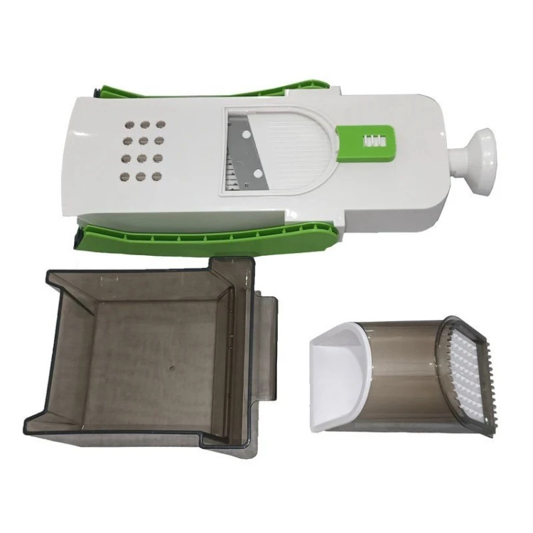سالادساز ماندولین وسیله ای بسیار کاربردی در آشپزخانه است که به وسیله آن می توان انواع میوه ها و سبزیجات از قبیل هویج، سیب زمینی، پیاز، قارچ، خیار و ... را در قطعات کوچک خلال، تکه تکه و ورقه ورقه کرد. این سالاد ساز دارای بیش از 30 نوع برش می باشد که با استفاده از پیچ های تنظیم کننده در پشت آن میتوان ضخامت ها و اندازه های دلخواه را جهت ورقه ای کردن و یا ریز ریز کردن انتخاب کرد. کار با این وسیله بسیار راحت است و می توان در سریعترین زمان ممکن هدف خود را به انجام برسانید. مزایای سالاد ساز ماندولین عبارت است از استفاده آسان، امنیت بالا و عدم آسیب به انگشتان، مصالح و تیغه های بادوام و مرغوب و شستشوی آسان
