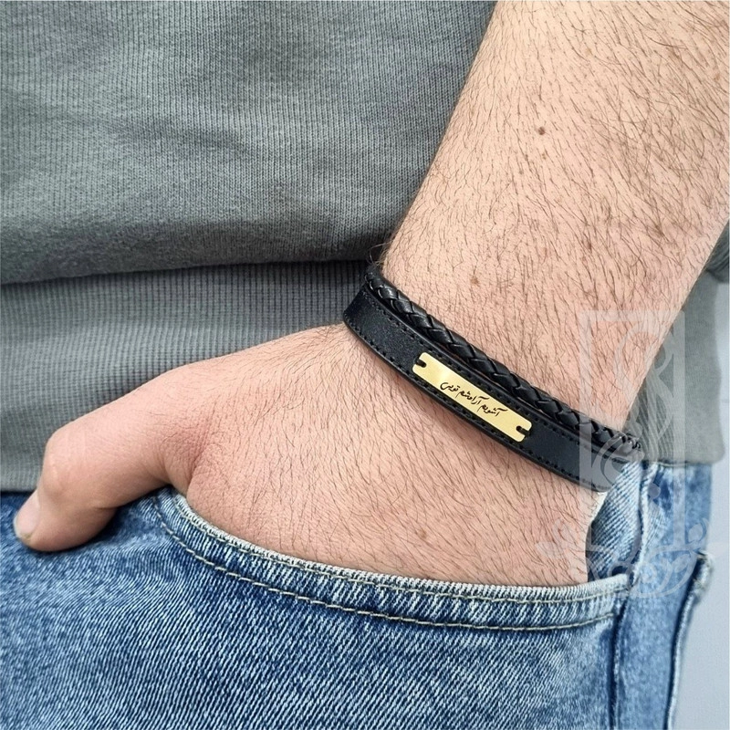 دستبند طلا 18 عیار مردانه لیردا مدل شعر آشوبم آرامشم تویی sher 830