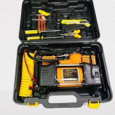 لوازم کامل مورد نیاز برای پنچر گیری نیز همراه این کمپرسور به علاوه یک شلنگ فنری 3 متری نیز در کیف قرار دارد.