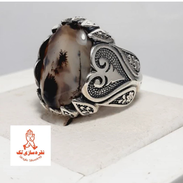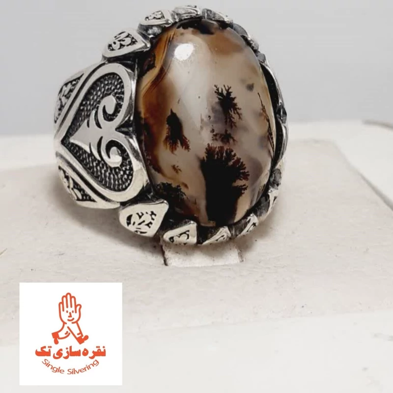 انگشتر مردانه نقره ۹۲۵ نگین شجر درختی بسیار زیبا و خاص مخصوص خاص پسندان.