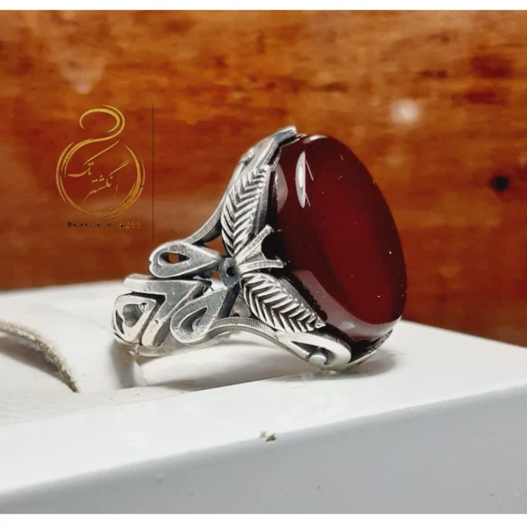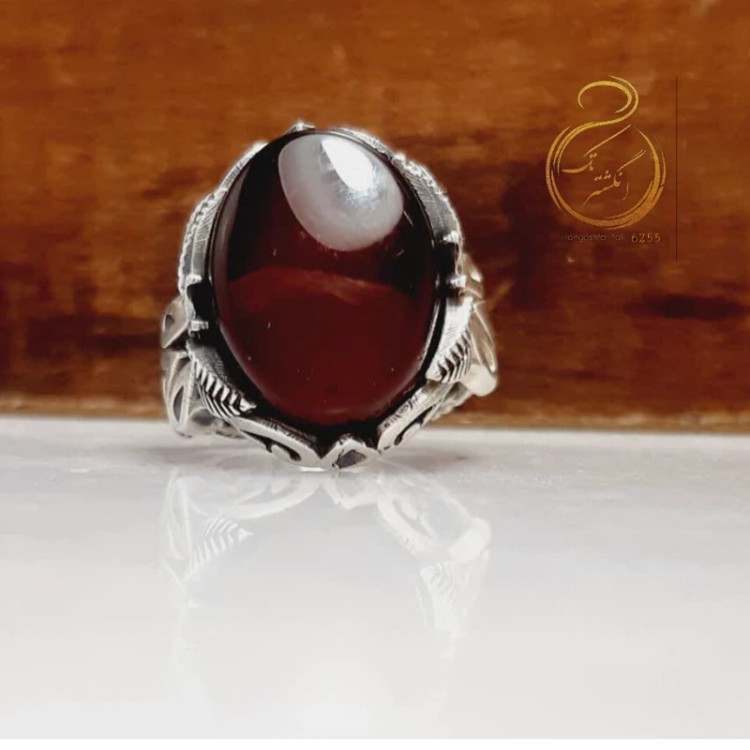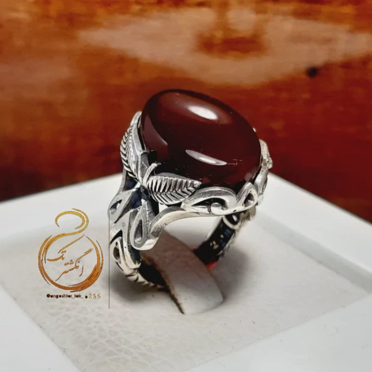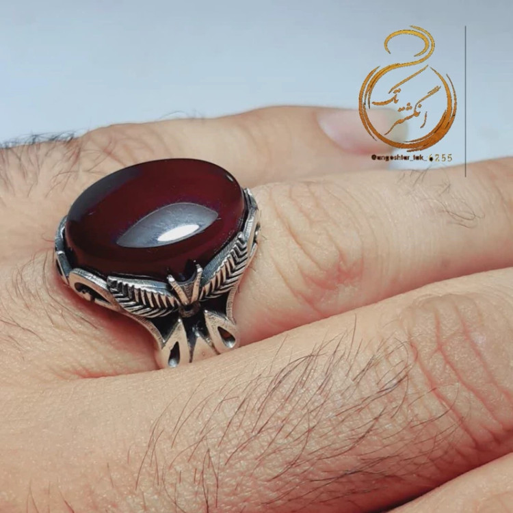 انگشتر عقیق سرخ خراسانی با رکاب نقره مردانه.