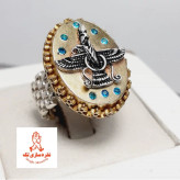 انگشتر نقره مردانه عیار ۹۲۵ مدل رو لکسی و فروهر با آبکاری طلا با مخراجکاری ۸ عدد نگین توپاز صنعتی.