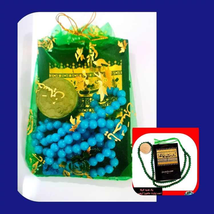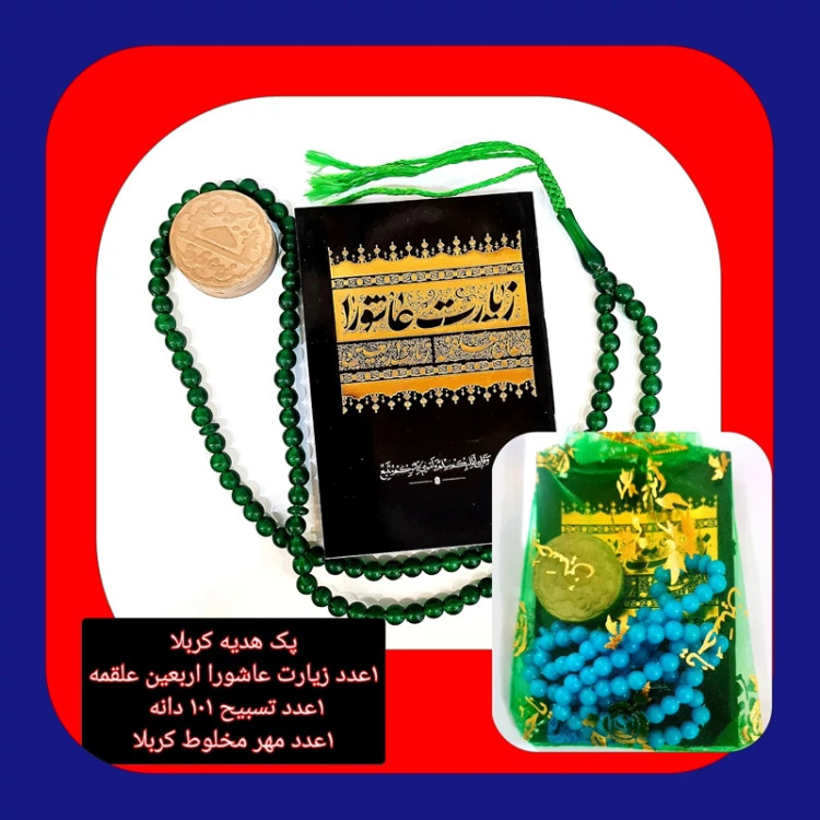 پک هدیه کربلا 1عدد زیارت عاشورا اربعین علقمه 1عدد تسبیح 101 دانه 1عدد مهر مخلوط کربلا