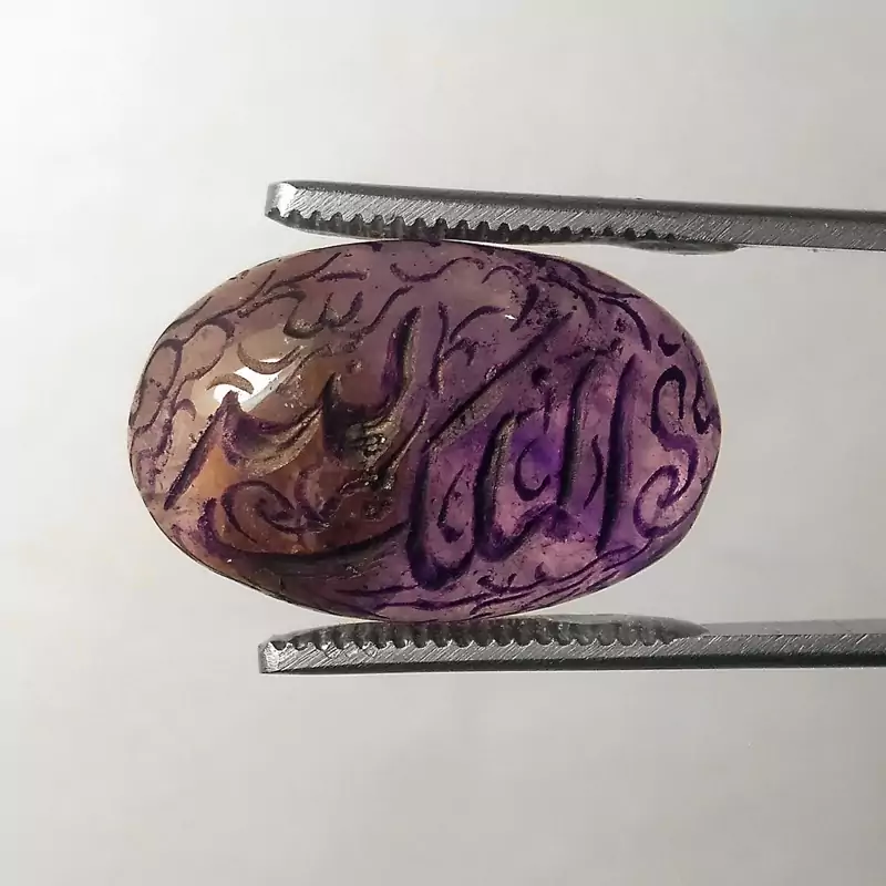 آمیتیست خطی آفریقایی طبیعی و معدنی حکاکی دست نویس، ذکر الملک لله ... کد 28