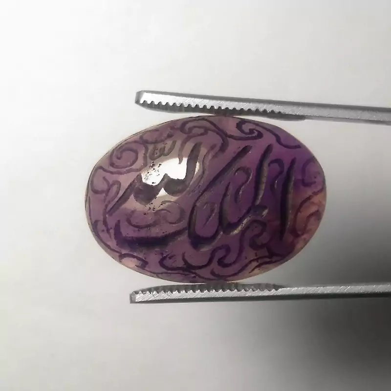 آمیتیست خطی آفریقایی طبیعی و معدنی حکاکی دست نویس، ذکر الملک لله ... کد 23