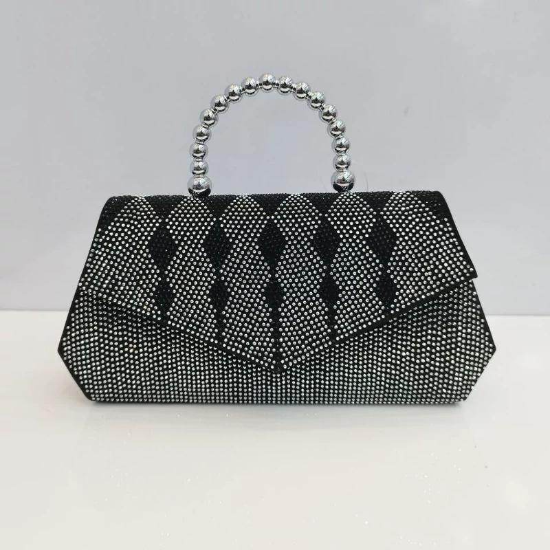 کیف مجلسی نگین کریستال دسته دار با بند دوشی بلند زنانه و دخترانه شیک و زیبا در دو طرح