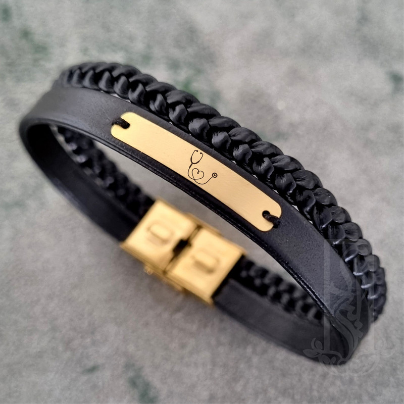 دستبند طلا 18 عیار مردانه لیردا مدل گوشی پزشکی 243