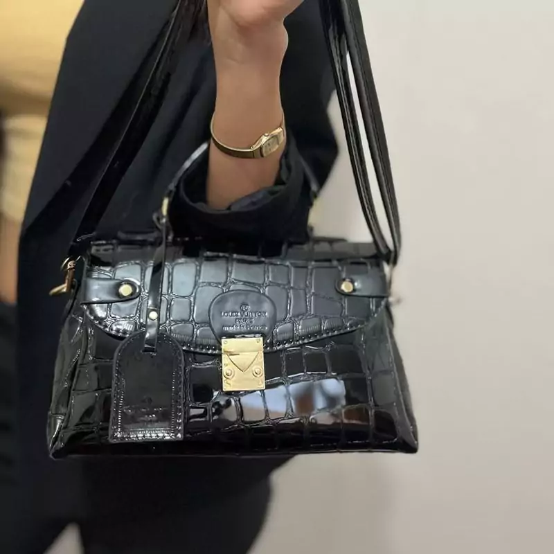 شیک و زیبا .جادار .دسته دارد .بند بلند دوشی دارد .با طرح زیبا و جدید .سگک و یراق طلایی