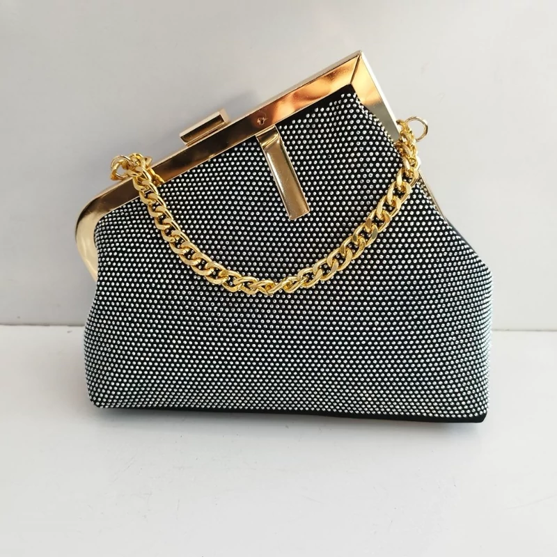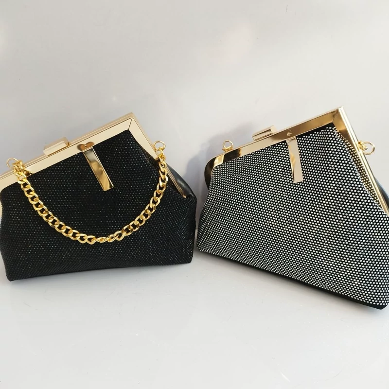 کیف زنانه و دخترانه مجلسی شیک نگین دار لبه طلایی