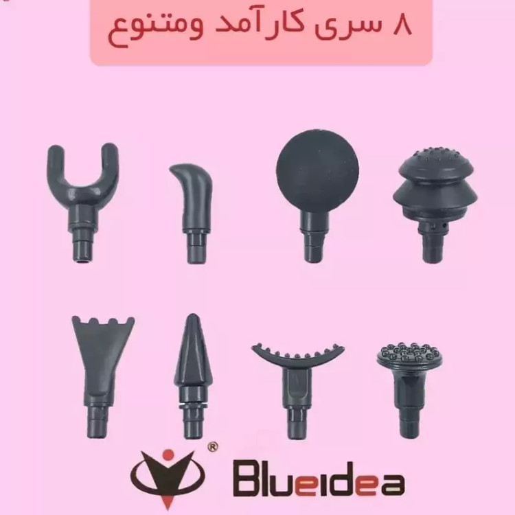 تفنگ ماساژ مثلثی فیشیال بلوایدیا Blueidea FASCIAL GUN BLD-888 جدیدترین محصول شرکت بلوآیدیا با امکانات جدید می باشد. دلیل طراحی این مدل از ماساژور تفنگی که به آن Fascial Gun نیز گفته می شود این است که کاربر به راحتی می تواند قسمت هایی از بدن مانند پشت که دسترسی به آن ها سخت است را با این محصول ماساژ دهد. قدرت محصول در تعداد سری آن است. این محصول با 8 سری در اشکال مختلف و با مقاومت بالا به شما این امکان را می دهد که انواع ماساژها را بدون محدودیت بر روی خود انجام دهید. این ماساژور دارای 32 سرعت مجزا میباشد که شما میتوانید با تنطیم هر سرعت میزان نفوذ ضربات به بافت را تنظیم کنید. موتور این محصول از 1800 تا 3200 ضربه در دقیقه قدرت دارد که این محصول را به یک ماساژور تفنگی حرفه ای تبدیل میکند که ماساژورها ، فیزیوتراپها و … میتوانند از آن در کلینیک خود بهره ببرند.