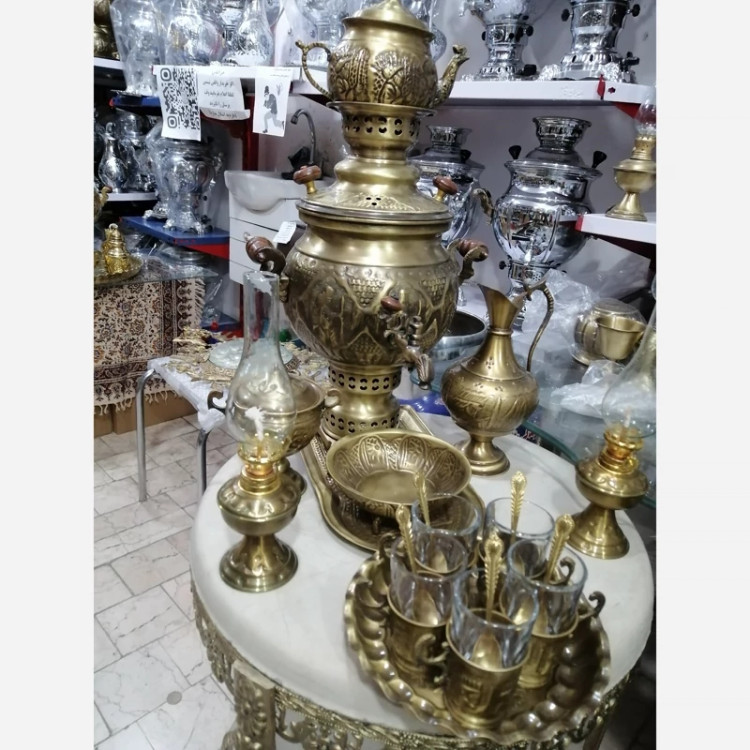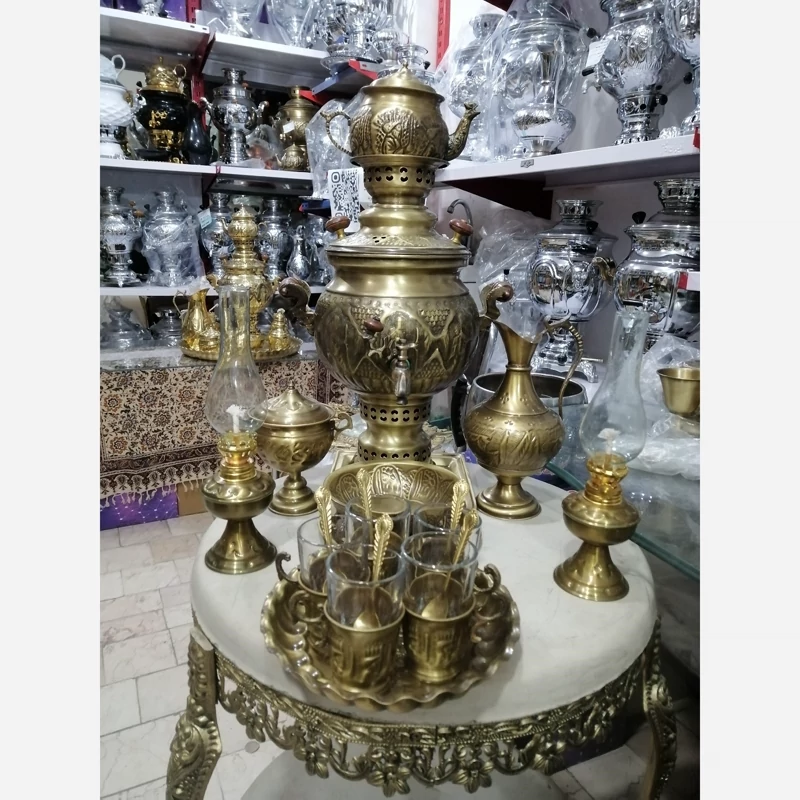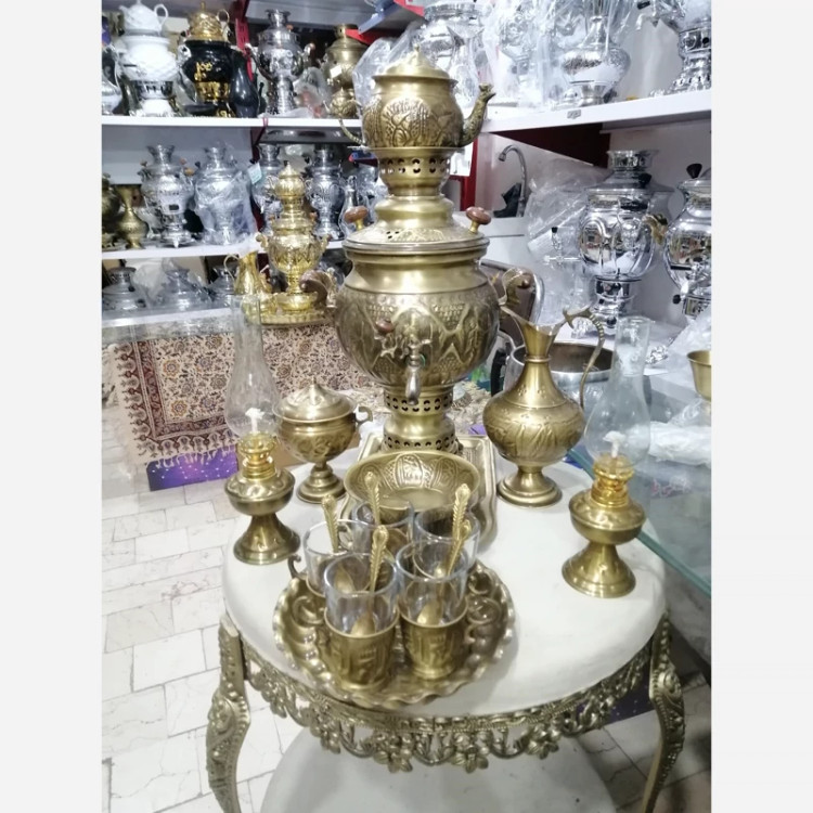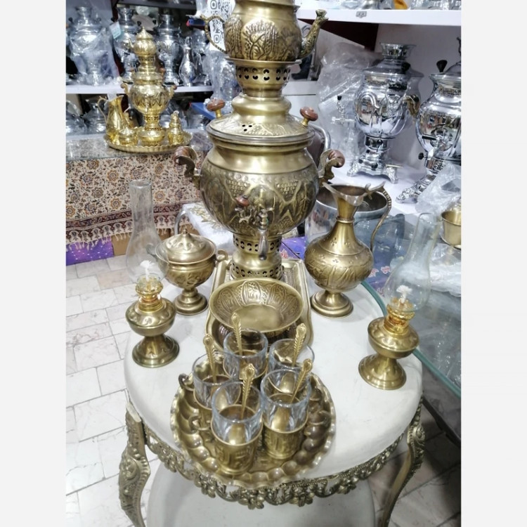 سماور برنجی زغالی ذغالی سرویس 24تکه برنج یلدا شب چله