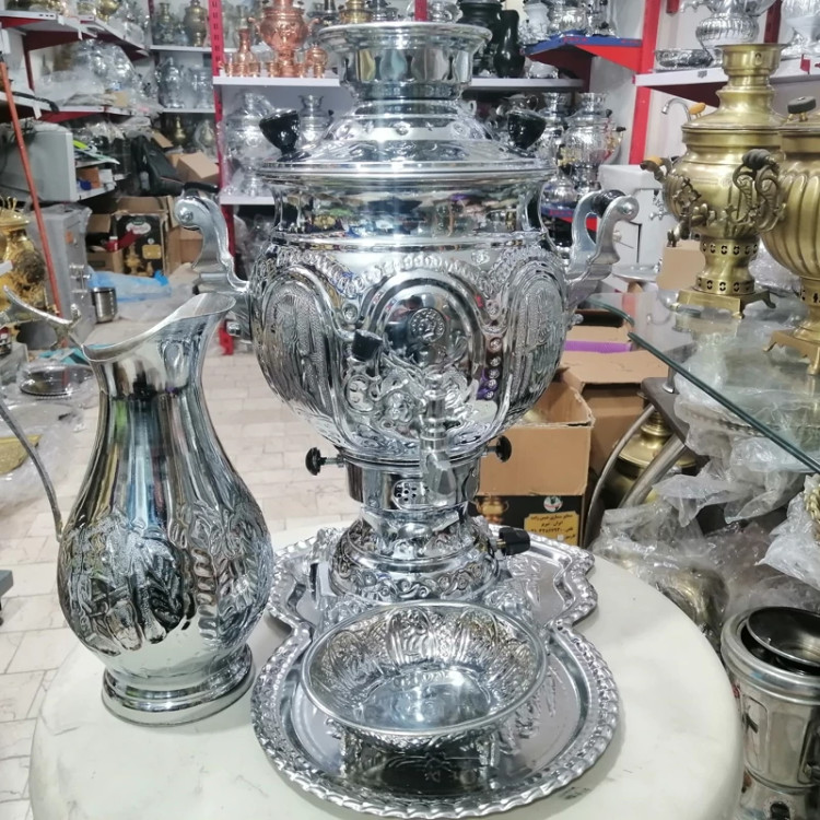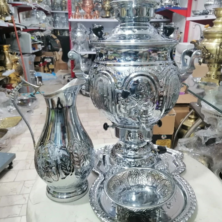 با سرویس کامل تصویر شامل، سماور، سینی، جام، پارچ