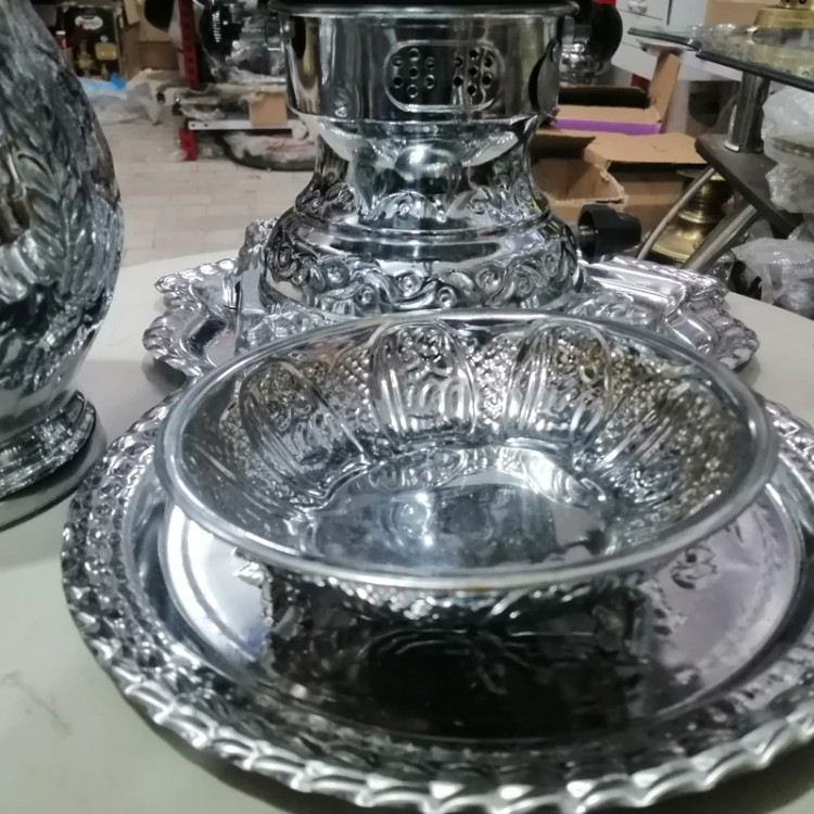سرویس سماور گازی شامل سماور پارچ کاسه جام سینی استیل لوازم خانگی گازسوز جهیزیه آشپزخانه ارسال رایگان