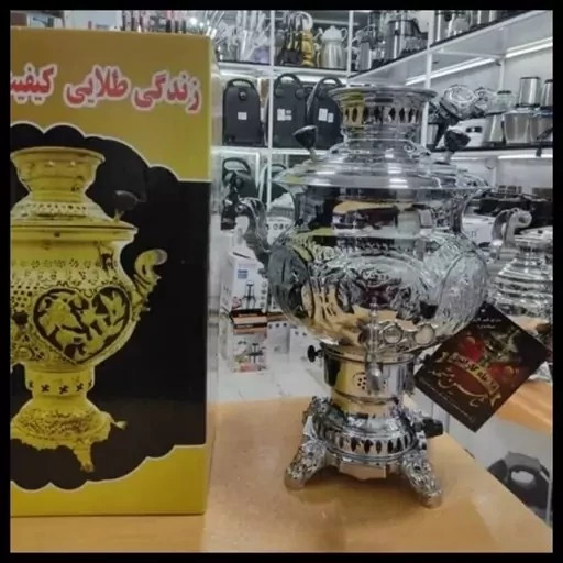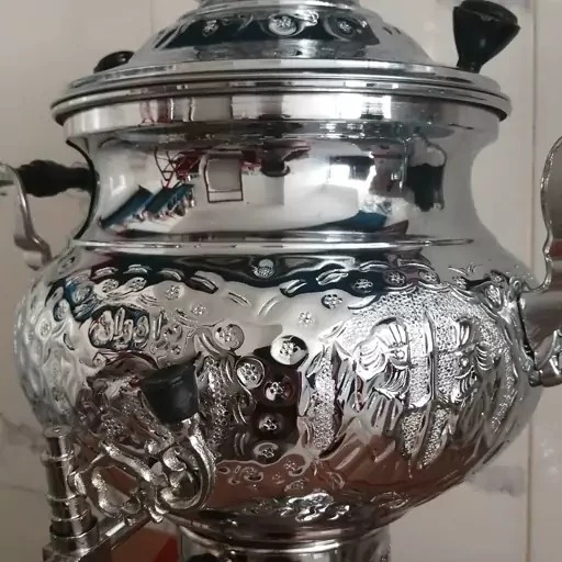 سماور گازی استیل حجم 10 لیتر دارای حکاکی و منقش