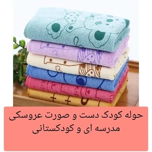 حوله دست و صورت کودک کارتونی 6 عددی مدرسه ای سایز 35در75 حوله مسافرتی ورزشی نانو میکرو فایبر حوله دست صورت