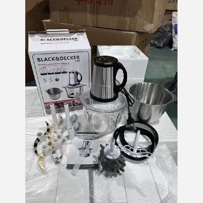 خردکن دوکاسه بلک اندیکر-6+6تیغه تیتانیوم طلایی همراه با سیر پوست کن و همزن-3 کاره- قدرت 3000W وات -مدل GC500-b5