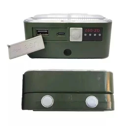چراغ خورشیدی دستی و پاوربانک دار دارای 4 لامپ SMD و نوردهی خوبی دارد.