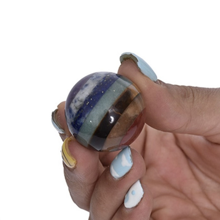 سایر توضیحات: به دلیل طبیعی بودن، هر گوی هفت چاکرا در اندازه، شکل، رنگ و الگو با یکدیگر کمی متفاوت هستند .