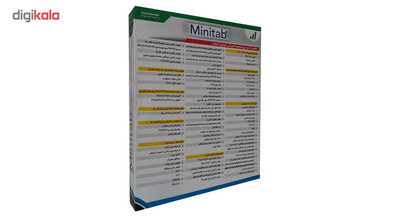 نرمافزار MiniTab برای متخصصان علم آمار، نرمافزاری شناختهشده و کاربردی است که در نرمافزار «آموزش جامع MiniTab» بهطور کامل و اصولی آموزش داده میشود. رسم نمودارهای سهبعدی، انجام تحلیل کنترل کیفیت آماری، انجام تحلیل سریهای زمانی، ابزارهای طراحی و تحلیل طرحهای آزمایشی، ابزار تعیین اندازهی نمونه و قدرت آزمون، ابزارهای آنالیز بقا و قابلیت اطمینان، امکان واردکردن دادههای ورودی به شکلی بسیار آسان، شبیهسازی دادههای تصادفی بر پایهی توزیعهای مختلف، برآورد نقطهای و فاصلهای و آمارهای آنها و روشهای گرافیکی جهت تشریح دادهها از جمله ویژگیهای مینی تب هستند. سرفصلهای آموزشی این مجموعه بهترتیب عبارتاند از: «شروع کار با MiniTab»، «تجزیه تحلیل دادهها با استفاده از نمودار»، «آمار توصیفی»، «کنترل کیفیت»، «مقدمهای برای برنامهنویسی»، «استفاده از ReportPad برای نوشتن گزارش»، «آمادهکردن یک کاربرگ»، «سفارشیکردن قابلیتها» و «سری زمانی». مهندس «میثم غفار لنگرودی» با بیش از پنج سال سابقهی تدریس، آموزش این نرمافزار را برعهده دارد. همچنین برای آنکه آموزشها ملکهی ذهنتان شود و آموختههایتان را اجرا کنید، نسخهی نرمافزار Minitab به همراه فایلهای تمرینی در این مجموعه گنجانده شده است. شرکت مهندسی «نوین پندار» این آموزشهای مفصل را در یک حلقه دیویدی با ظرفیت ۹ گیگابایت منتشر کرده و در دسترس علاقهمندان قرار داده است.