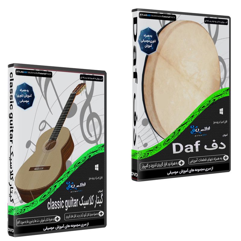نرم افزار آموزش موسیقی دف نشر اطلس آبی به همراه نرم افزار آموزش گیتار کلاسیک نشر اطلس آبی