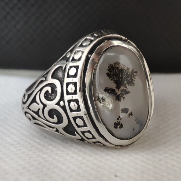 انگشتر مردانه نقره روسی با سنگ شجر5