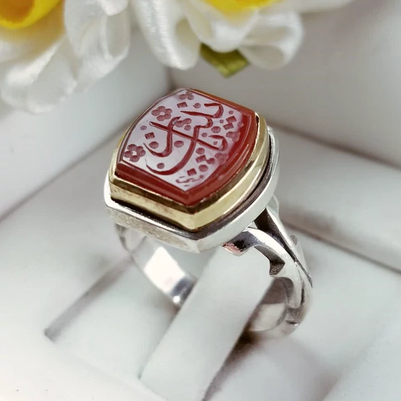 انگشتر نقره مردانه عقیق سرخ منقش به یا زینب -