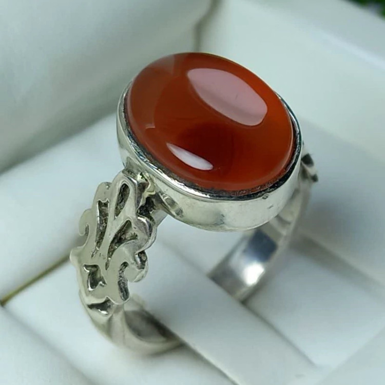 انگشتر نقره مردانه با نگین عقیق سرخ یمنی ،-