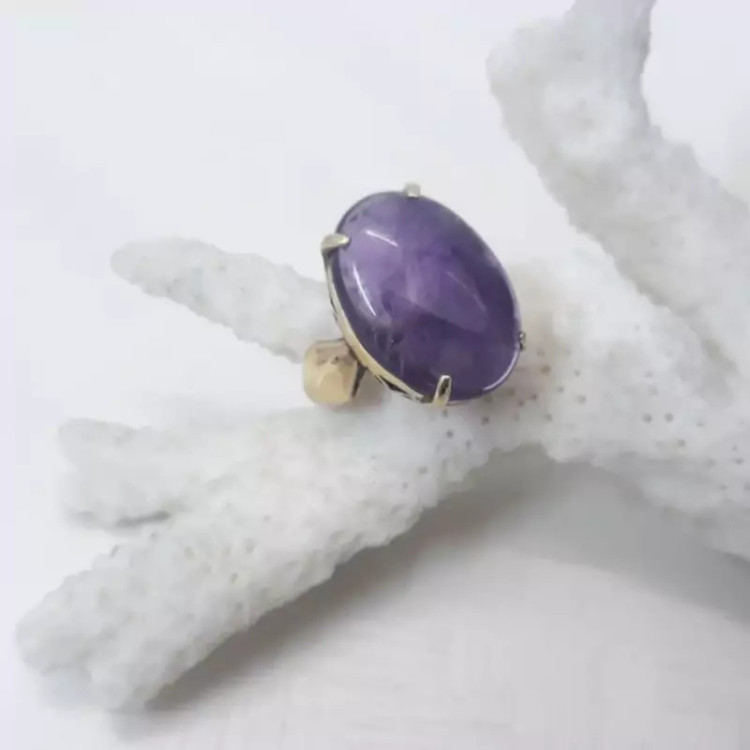 انگشتر طلا روسی زنانه با نگین آماتیست اصل
