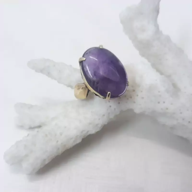 انگشتر طلا روسی زنانه با نگین آماتیست اصل