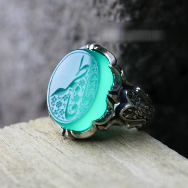 انگشتر نقره مردانه عقیق سبز منقش به یافاطمه