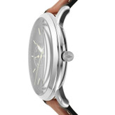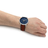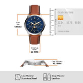 + موارد بیشتراین ساعت در ابعاد قطر قاب 42 میلیمتر ضخامت قاب 10 میلیمتر عرض بند 22 میلیمتر طراحی شده است. جنس بند این ساعت از چرم طبیعی ست. جنس بدنه این ساعت از استیل ضد حساسیت با کیفیت بالا (318 میکرون) می باشد. از ویژگی های تخصصی این ساعت می توان به نمایشگر شب و روز، تاریخ شمار (تقویم) و روزشمار اشاره کرد. مقاومت این ساعت در برابر آب 5 اتمسفر می باشد
