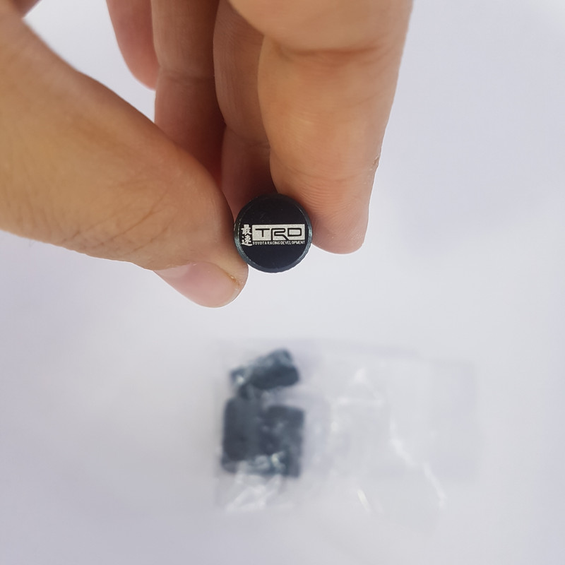 سر والف لاستیک خودرو با حک لیزری آرم TRD درپوش والف جهت جلوگیری از زنگ زدگی، و ورود گرد و غبار به سوزن والف بسته 4 عددی (دارای واشر آب بندی داخلی) جنس: آلومینیوم