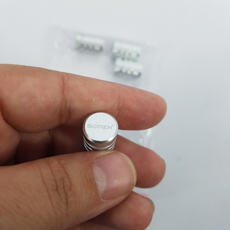 روش استفادهسر والف لاستیک خودرو با حک لیزری آرم SOREN+ درپوش والف جهت جلوگیری از زنگ زدگی، و ورود گرد و غبار به سوزن والف بسته ۴ عددی (دارای واشر آب بندی داخلی) جنس: آلومینیوم