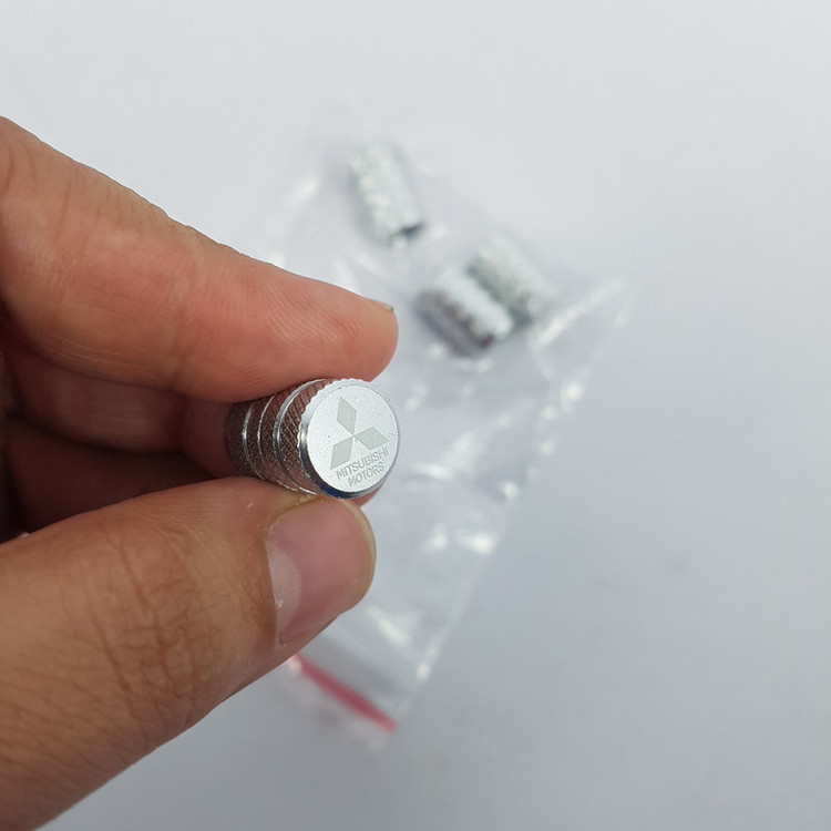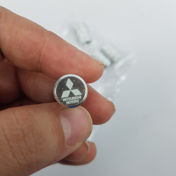 سر والف لاستیک خودرو با حک لیزری آرم میتسوبیشی درپوش والف جهت جلوگیری از زنگ زدگی، و ورود گرد و غبار به سوزن والف بسته ۴ عددی (دارای واشر آب بندی داخلی) جنس: آلومینیوم