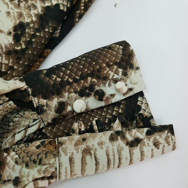 بالاتنه دکمه می خورد، پایین تنه دامنی و بسته است. سر آستین ها دکمه می خورد یقه هفت تنخور عالی (محصول رده NEXT Tailoring)