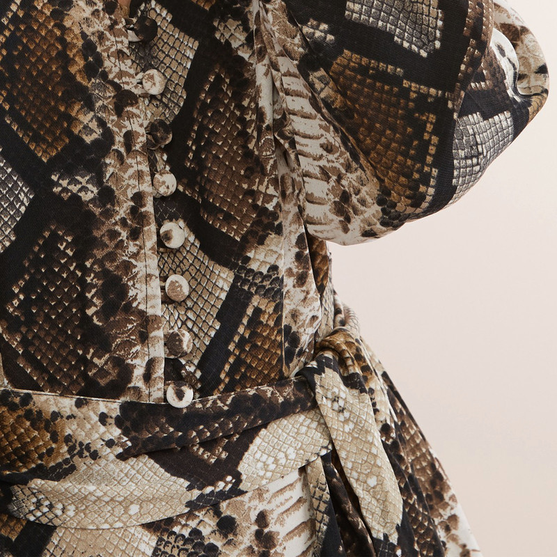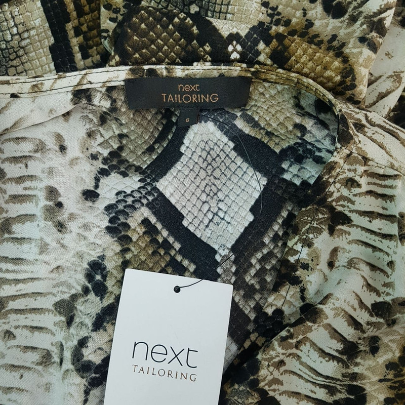 بالاتنه دکمه می خورد، پایین تنه دامنی و بسته است. سر آستین ها دکمه می خورد یقه هفت تنخور عالی (محصول رده NEXT Tailoring)