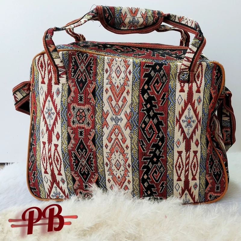 کیف سنتی و ساک دستی زنانه مسافرتی و کیف دستی جاجیم ترکمن و صنایع دستی و سبک و جادار و قیمت مناسب و پرزیپ