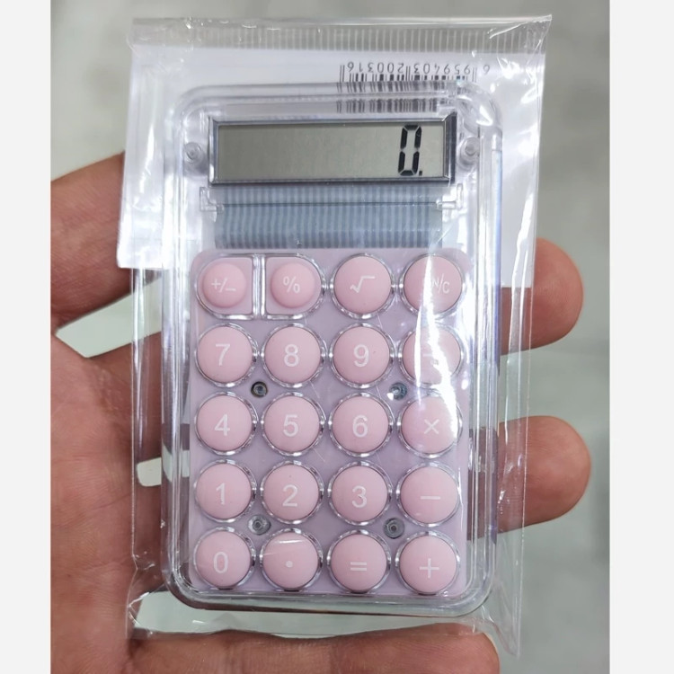 ماشین حساب شفاف شیشه ای جیبی پاستیلی ( خرید عمده و تکی ماشین حساب گناوه مارکت )