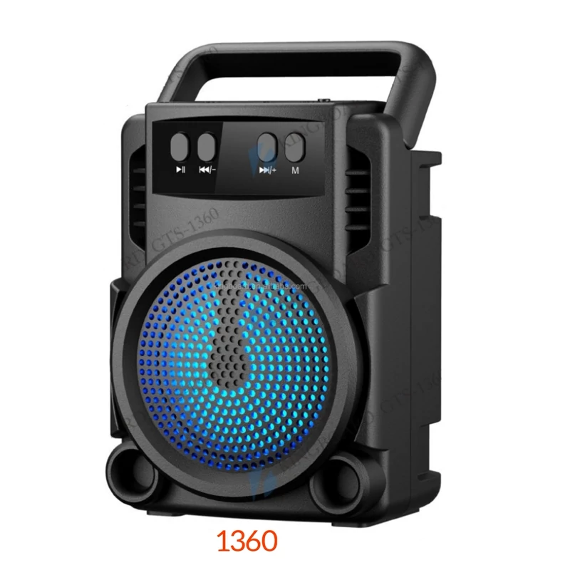 اسپیکر پرتابل GTS-1363 را می توان به شکل ایستاده به کار برد و علاوه بر بلوتوث با کارت حافظه و فلش مموری سازگاری دارد و همچنین وجود یک ساب 3 اینچی، رقص نوررنگی در هنگام پخش موزیک ،
