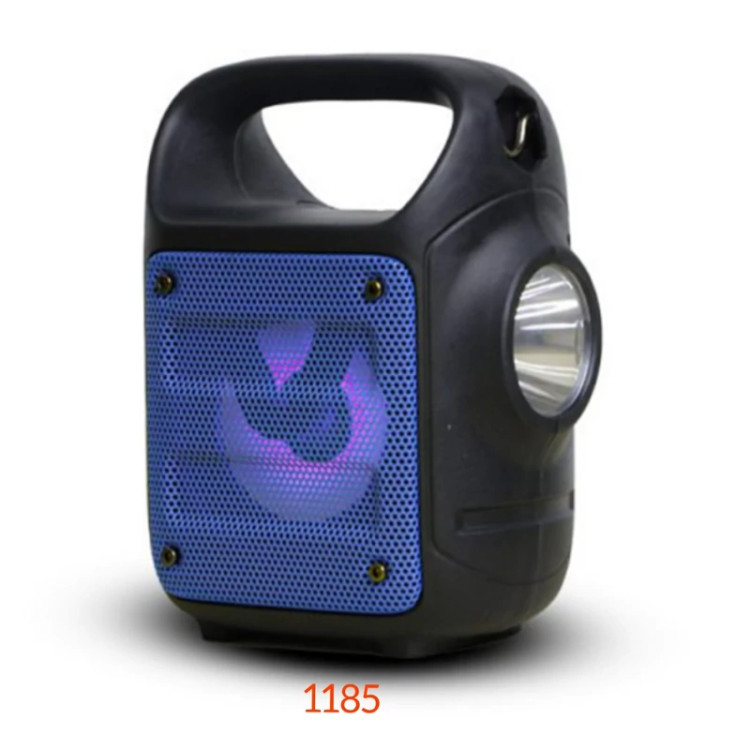 اسپیکر قابل حمل KTS-1185 مجهز به چراغ LED قوی دارای سه حالت زیاد- متوسط و چشمک زن میباشد که از این اسپیکر قابل حمل میتوان به عنوان چراغ شارژی نیز استفاده نمود ، این اسپیکر دارای باند خروجی به قطر سه اینچ و توان 5 وات با کیفیت صدای بسیار مناسب میباشد.با این اسپیکر میتوان از طريق فناوري بلوتوث به تلفنهمراه يا پخشکنندهي صوتي متصل شد. در قسمت بالایی اسپيکر يک درگاه USB و يک درگاه کارت حافظه به چشم ميخورد که از طريق آنها نيز میتوانید موسيقي دلخواهتان را گوش دهيد .این اسپیکر توانایی پشتیبانی از کارت حافظه و USB با ظرفیت 32 گیگا بایت را دارد. از ويژگي هاي ديگر اين اسپيکر ميتوان به راديو FM و ورودی میکروفون اشاره کرد. این اسپیکر دارای باطری قابل شارژ نیز میباشد. وجود نور با چندین رنگ متفاوت در قسمت جلویی اسپیکر، زیبایی خاصی را ایجاد نموده است