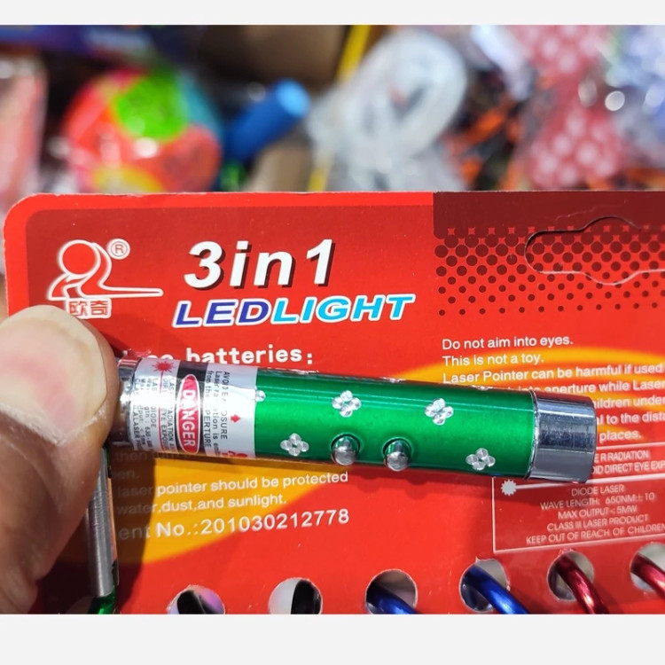 لیزر سه کاره ( لیزر ، چراغ قوه ، پول شناس ) ( خرید عمده و تکی اسباب بازی گناوه مارکت )